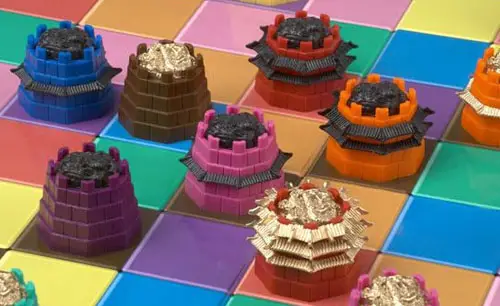 The player who won the first (or previous) round places an octagonal 'Sumo ring' on the dragon tower that went through to a square on the opponent's 'home row'.