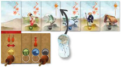 Example: At the end of the game, you play a Storm token on your third Lesson card. You decide to transform this token into the "Spring Season to make a sequence of five Springs and gain the most