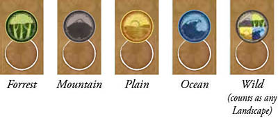 Landscape: These icons show which type of Landscape a player can paint in the background of their Prints if they play one of their Brush pawns on it.