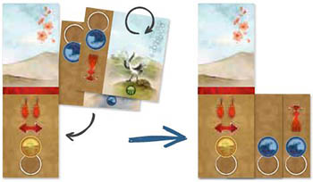 Example: You take two Lesson cards that you want to add to your Studio. Turn over these two cards and play them under your Starting Tile to extend your Studio.