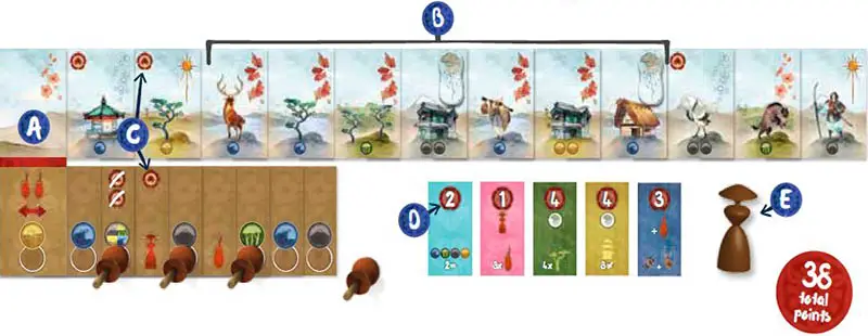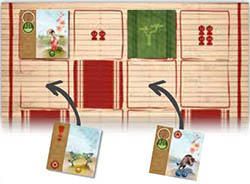 Example: The second Lesson card interests you and you decide to take it: Choose this column. At this point in the game, there is only one card per column. You therefore only take one Lesson card. Taking more cards requires more patience...