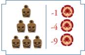 The cunning Yokai spirits steal your points. During the final count, subtract points based on the number of Yokai tokens that you have in front of you.