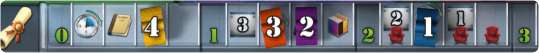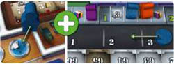 Not only are you choosing a benefit, but the position you choose is significant too, because the order in which you get starting items is right-to-left on this track; this is also the turn order for the first Department Selection Phase of the game.