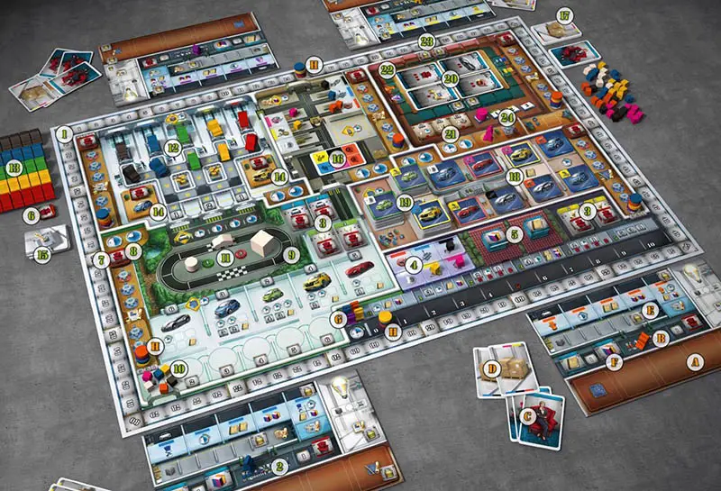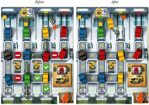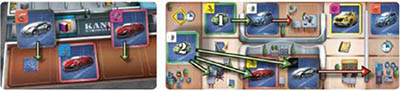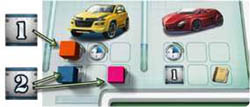 Note: To speed up game pace, and because choosing a garage may take some time, keep your claimed car(s) next to your Player Board until the end of your turn. Only then proceed with the last step. At the end of the game, cars in your garage will be worth pp (see Final Scoring).