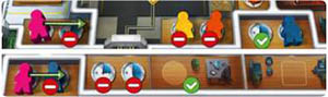 24 Place the pink round marker in the 0 space of the Week track, and the pink meeple in the circle at the bottom right of the department.