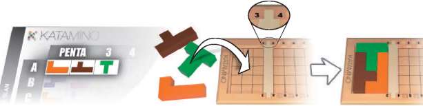 The piece must lay flat and completely inside the grid area. The second player then selects a pentamino and does the same. The winner is the last player to place a Pentamino completely on the grid.