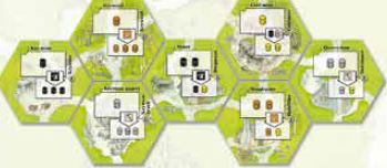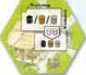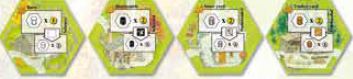 A player places a worker on this tile then takes the resources indicated from the stock, if available. Any resources generated in a player's own village are placed on the tile generating the resources. Any resources generated in another player's village or from a tile being bid for are placed on the player's home tile.