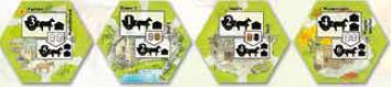 There are four turn order tiles. Depending on the number of players, some of these tiles may not be in use during the game. The side of the tile used will also depend on the number of players. The black worker icons at the top of the tiles indicate in which games the tile is used and which side of the tile is visible.