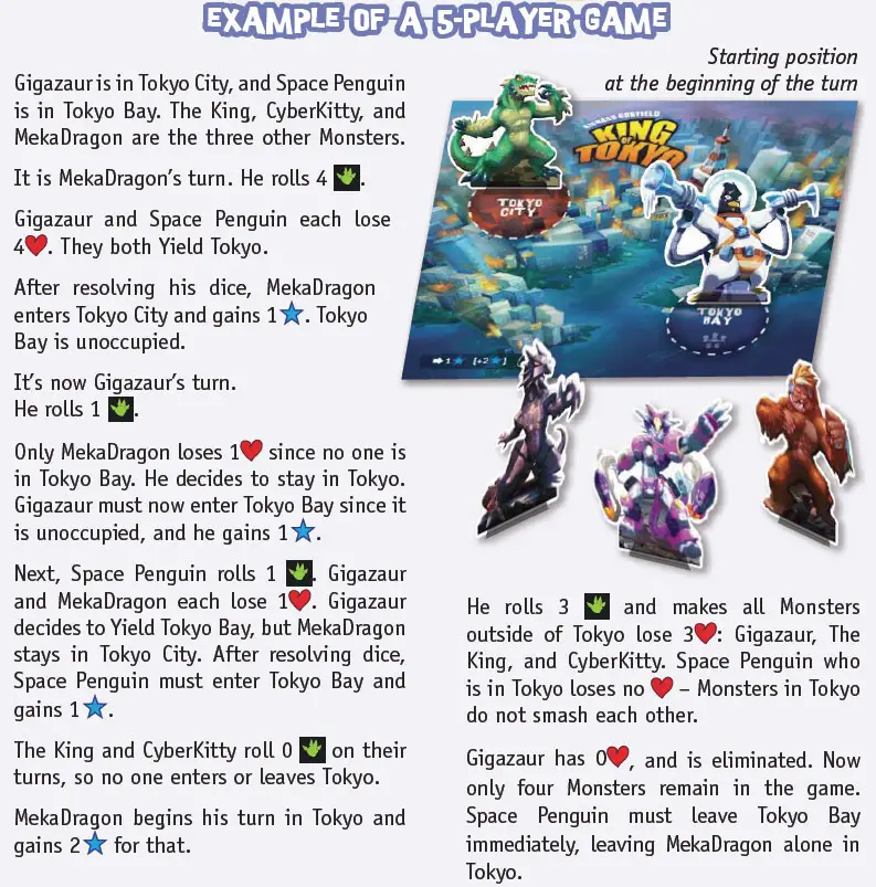 Note: No Monster starts the game in Tokyo. The first player must enter Tokyo City during this step.
