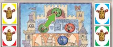 When a character is nominated as the new king, the players will vote whether or not that character should be crowned. The player who moved the character onto the throne takes the crown and places it before him: the crown represents King Vladimiro coming to check the election results.
