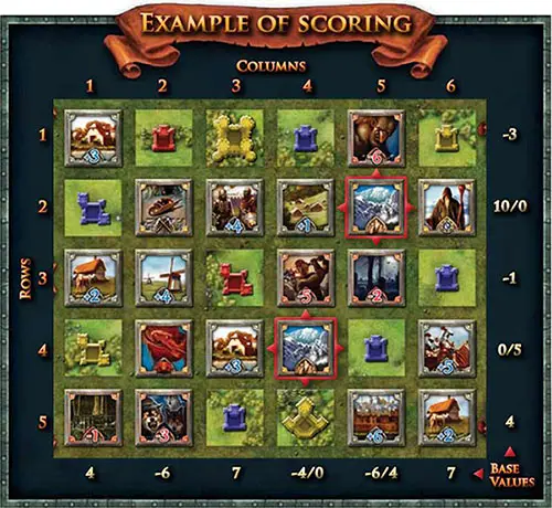 Follow the same procedure for the columns. Note that each tile and castle will score twice at the end of every epoch: once for its row, and once for its column.