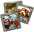 These 12 tiles represent farms, villages, cities, and other resources of a player's kingdom. Each resource tile shows a value between "+1" and "+6" which indicates the amount of gold that tile is worth.