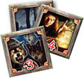 These six tiles represent dangerous monsters and locations that rob a kingdom of its wealth. Each hazard tile shows a value between "-1" and "-6" which indicates the amount of gold that tile is worth.