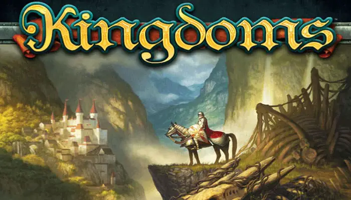 In Kingdoms, the English-language version of Auf Heller und Pfennig, players try to collect the most gold by establishing castles in the richest regions of the realm while avoiding hazards like dragons, swamps, and trolls.