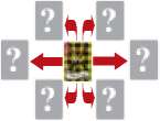 Influenced Clan Member cards can betray a .single neighbor in any of .six directions shown - left, right, and the four diagonals.