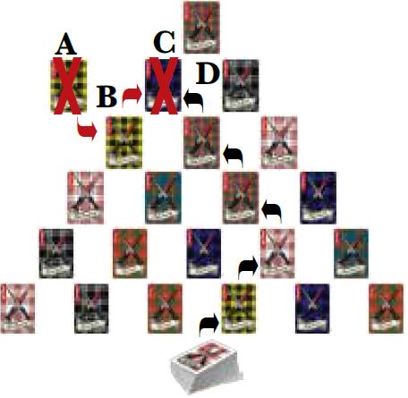 If the space to the left or light of the moving card is empty (B), it cannot ascend in that direction (C).