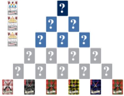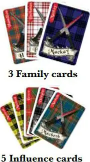 Clans ascend the pyramid of cards, rising from the bottom three rows of commoners, through the ranks of noblemen and guardians, until one finally gains the crown and is named King of Scotland.