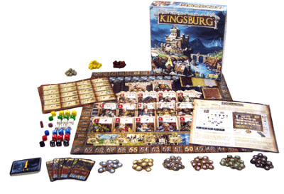 Each player strives to be the governor with the most Victory Points (VP) at the end of the fifth year. Players can gain points by influencing the King's advisors, constructing valuable buildings, and winning battles against the invading enemies.