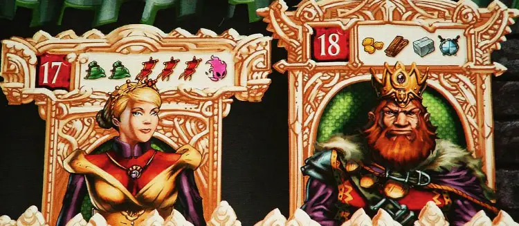 Each summer, the King sends his most trusted Envoy to assist the governor that (in his judgment) has developed the least. The player with the fewest buildings (in case of a tie, the tied player with the fewest goods) is awarded the King's Envoy marker. If there is a tie for buildings and goods, then no player receives the marker.