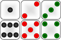 Players may read the dice any way they wish; provided the dice faces meet number and color scoring requirements in either Basic or Kismet sections at completion of the turn.