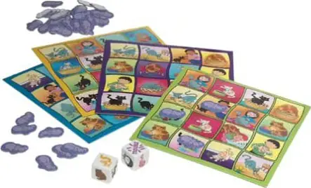 Pick a bingo board and pile the mice in the center of your play area, where everyone can "catch" them. Two players can use all four boards.