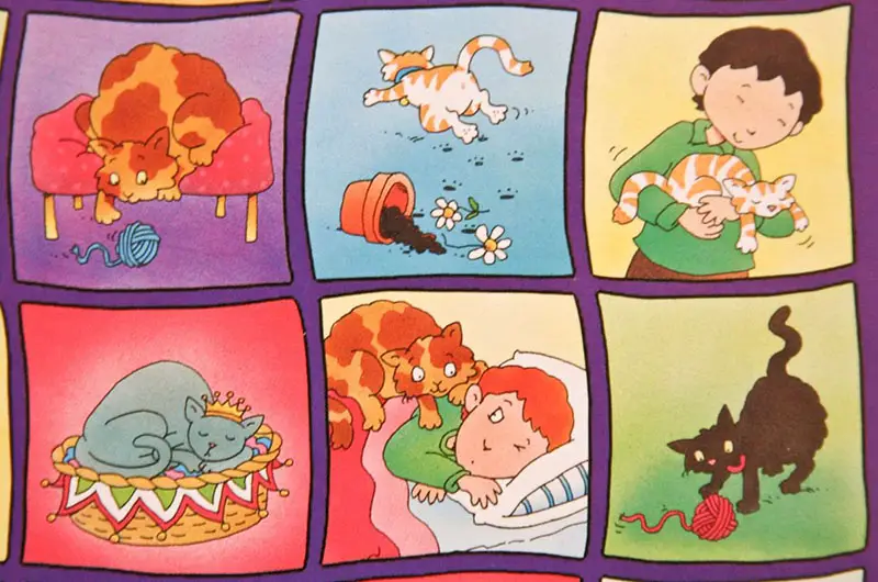 All players look at their boards to see if they have a square that matches (in this case, the square would show Finny playing with a ball of yarn).