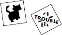 Some of these crazy cats are up to no good! When you roll any Kitty and "Trouble", all players look at their boards to see if they have a square with that feline misbehaving.