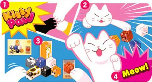 Kitty Paw is a dexterity and reaction game. Players try to be the first to complete the kitty combinations shown on the Kitty cards to score victory points (VP).