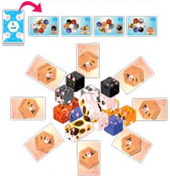 The game is played for a number of rounds. Each player will get one Kitty card in each round and try to be the first to create the patterns shown on the cards. Since this is a reaction game, all players will act simultaneously.