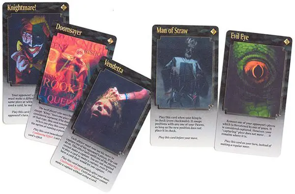 Each player has a deck of cards, each modifying the traditional rules of the game in a different way. Every move is a surprise! In Knightmare Chess, victory is never certain until the last move.