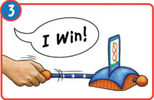 Use the Scorekeeper by pulling the Tug-o'-War rope gently towards you until you hear a click. Then, adjust the rope to the correct marking. One click per point!