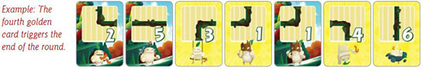 The round has multiple turns, each turn a path card is revealed and all players will add that path to their mats. The round ends after the 4th golden path card is revealed, and the sanctuary is scored.