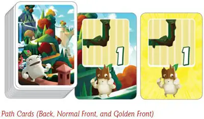 The oldest player is the Caller. This player shuffles the path cards and sanctuary cards separately and places them in two facedown decks on the table.