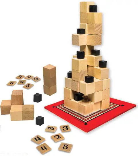 If the tower s falls during your turn, you lose your points for that round. After three rounds have been played, the player with the highest total score wins the game.