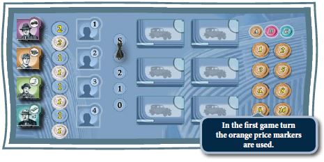 At the start of the game turn the respective colored price markers are placed on their spaces on the market.