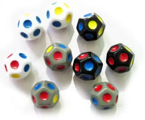 Before actual play begins, there is a "throw-off" to see which player will start the game. Each player throws any set of 3 dodecas of the same color. The higher-scoring set goes first.