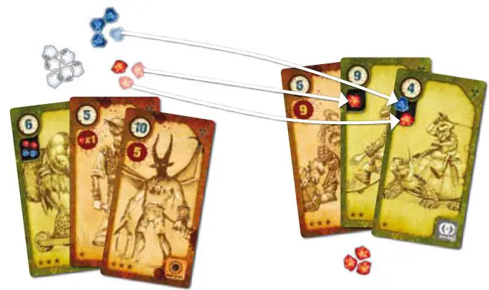 The active player takes any combination of crystals from the bank equalling 6 points of value (e.g. 2 red, or 3 blue, or 6 white, or I of each).Your agents and used relic cards remain at your campsite to defend it against any attacks for the round.