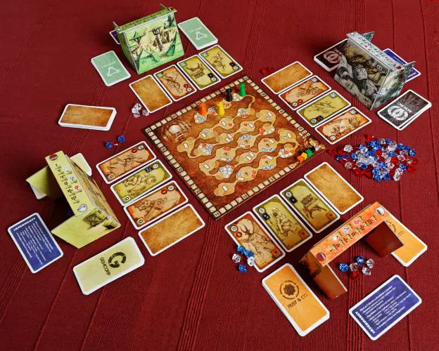 Relic cards have a dual function: While at the campsite they can be used to support the players' action, or they can be taken home or to the bank to score victory points.