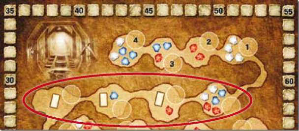When the first miner figure is picked, its owner places it on the start space nr. I. (the starting position that is farthest from the mine entrance), the second figure is placed on the start space nr. II. etc.