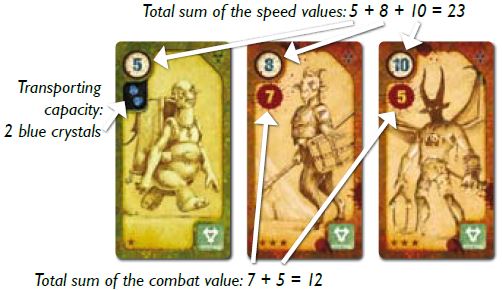 Note: It is not possible to load a blue crystal instead of a red one, even though red is more valuable than blue. There is no transport icon for relic cards, but they may be loaded in lieu of either red or blue crystals.