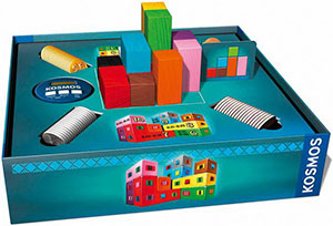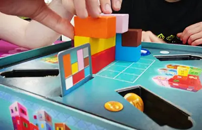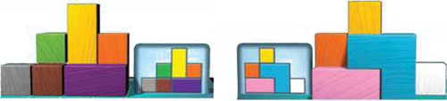 When the light blue tasks are used, the red block is set aside. Only in the game with the dark blue tasks are all 11 building blocks needed.
