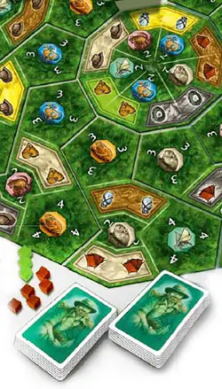 Place your explorers onto various island spaces, encircling as many of the valuable animals as possible. Play your cards to perform special functions, receive key resources, and score victory points for animals you've collected. If you play your cards right, you can get the upper hand!