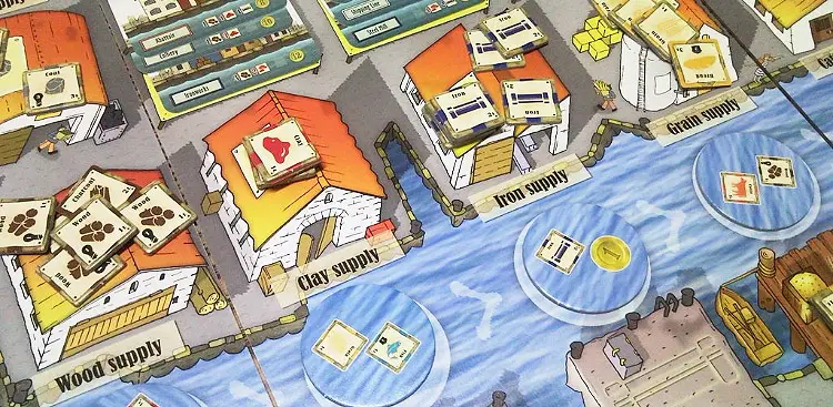 - A total of 420 tokens (coins, grain, iron, clay, wood, ..).
