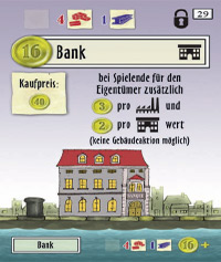 Most of the buildings allow visitors to take an action. Others (for example, the Bank) do not allow actions and are only important for their owner. These cards have a padlock in the top row.
