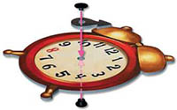 Before the first game, carefully punch all the pieces out of the die-cut sheets. Then use the snap fastener to connect the hour hand to the clock, as shown in the illustration on the right.