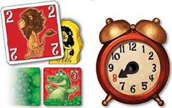 The path tile shows an animal, and the colour does not match the colour of the just-played card: Oh dear! Leo loses precious time. The hand of the clock is moved ahead as many hours as the number in the clock symbol on the path tile indicates.