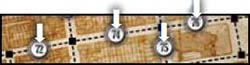 Jack is on numbered circle 56 and decides to use an Alley. His legal destinations on the block of houses to his south are 57, 73, 72, 71, 70, and 69. He chooses numbered circle 72 as his destination, and he records that number in the next square of his sheet. He places the Alley token on the move track as a reminder for the detectives, then he moves his Jack pawn one space forward, as usual. The labyrinthine back alleys of Whitechapel can greatly complicate matters for the police detectives...