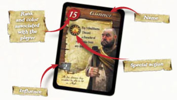 The cards in your hand are representing cremates on your ship. They help you to aquire the available booty. It's your goal to become as rich as possible by collecting the highest value booty tokens, but watch out and don't collect cursed tokens.