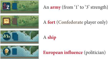 If the Confederate player captures and controls a blue location, he gains one additional point on the Europe track; this is lost if he subsequently loses the location.