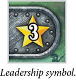 The attacker must now play one card face down. Some cards have a Leadership value, shown in a yellow star.